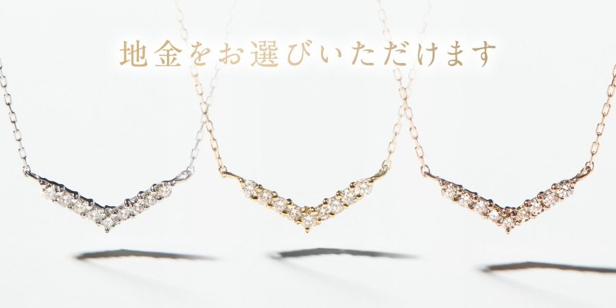 地金は【気品あふれるプラチナ】【華やかで肌なじみの良いイエローゴールド】【やさしいニュアンスが魅力のピンクゴールド】です。