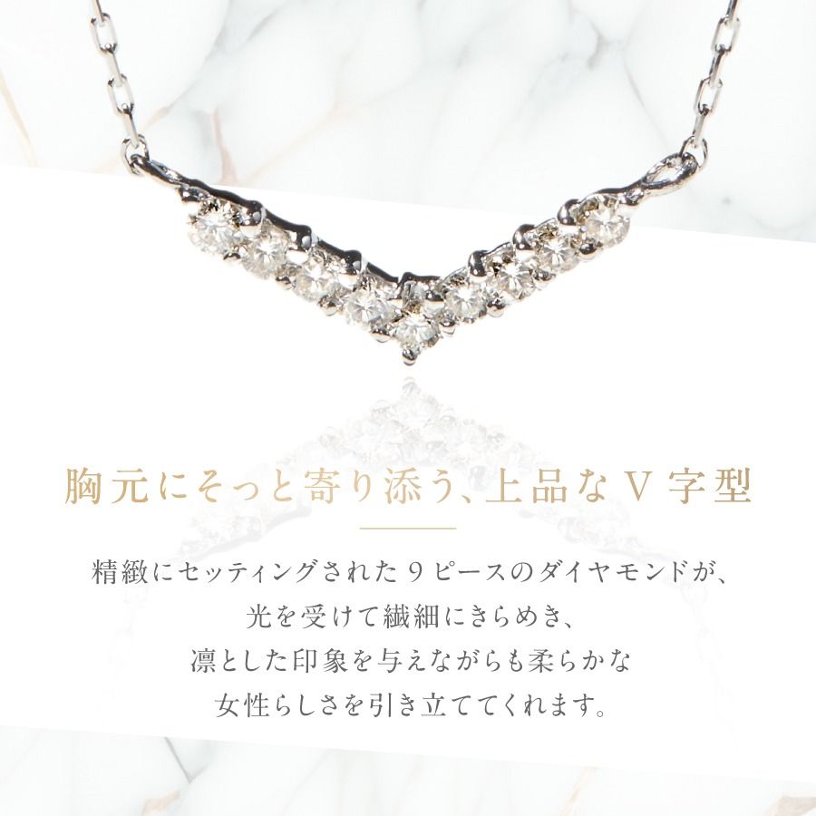 ~日常に、さりげない輝きを。9石のダイヤモンドが描くVラインペンダント~