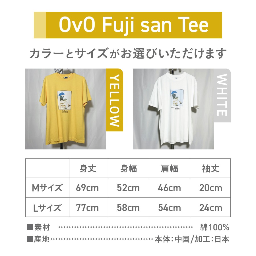 【 選べるカラー / サイズ 】 Tシャツ 半袖 YELLOW / WHITE 【サイズ M / L】 綿100% 「 OvO Fuji san Tee 」 ユニセックス ファッション 黄色 イエロー 白 ホワイト 富士山 日用品 山梨 富士吉田