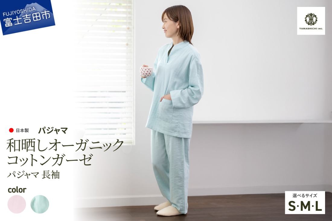和晒し オーガニックコットンガーゼ パジャマ 長袖 【選べるカラー 桜ピンク/ミントグリーン】【選べるサイズ Sサイズ/Mサイズ/Lサイズ】パジャマ 寝巻 ルームウェア ガーゼ 寝具 山梨 富士吉田