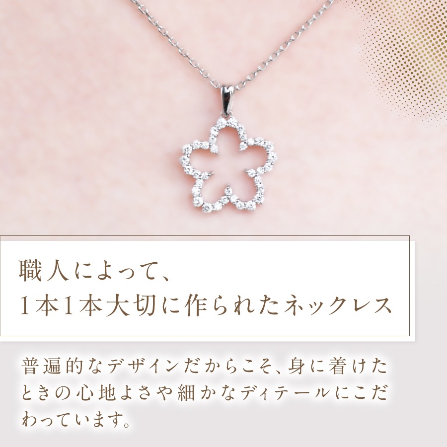 富士桜のモチーフのシルエットに留められた35石のダイヤモンドの輝きが美しい、上品なネックレスアイテムです。