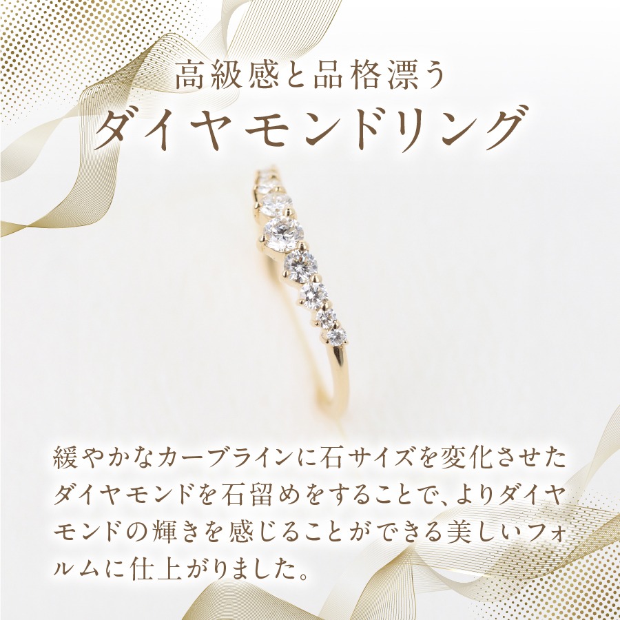 0.30ctUP(total)のダイヤモンド9石が光り輝くダイヤモンドリングです。