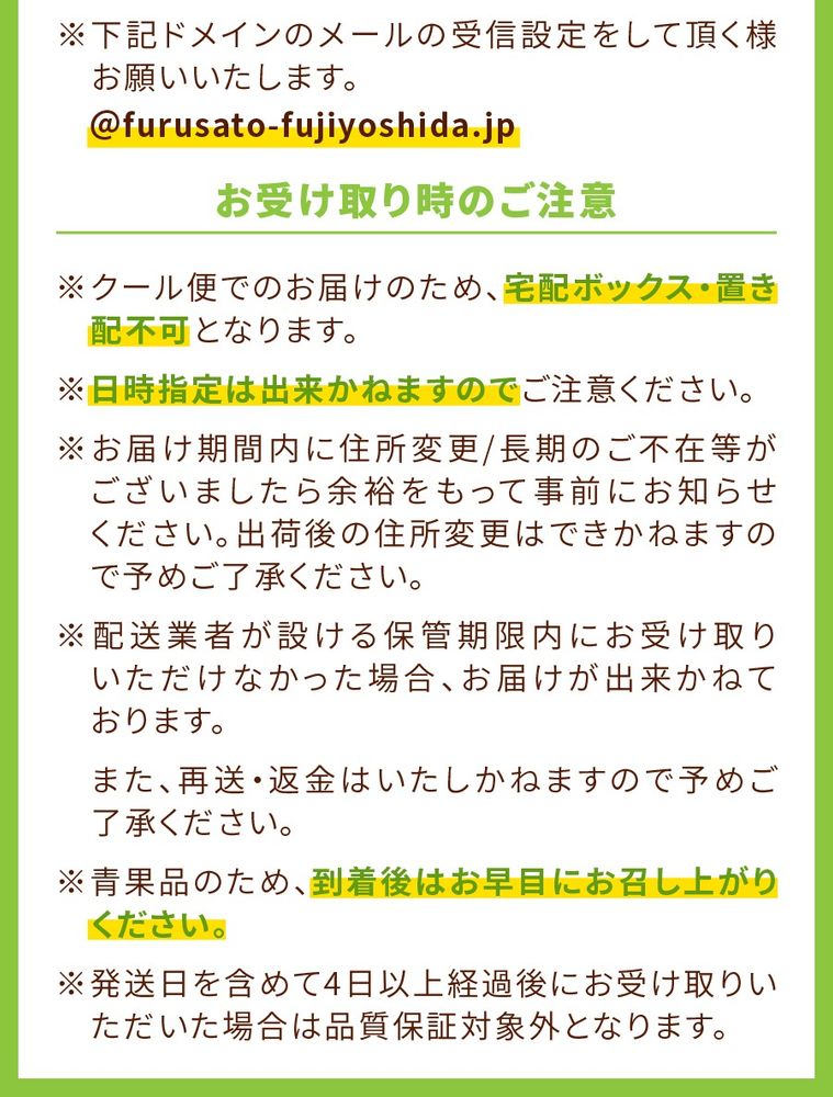 ※青果品となりますので、お早めのお受け取りをお願いします。