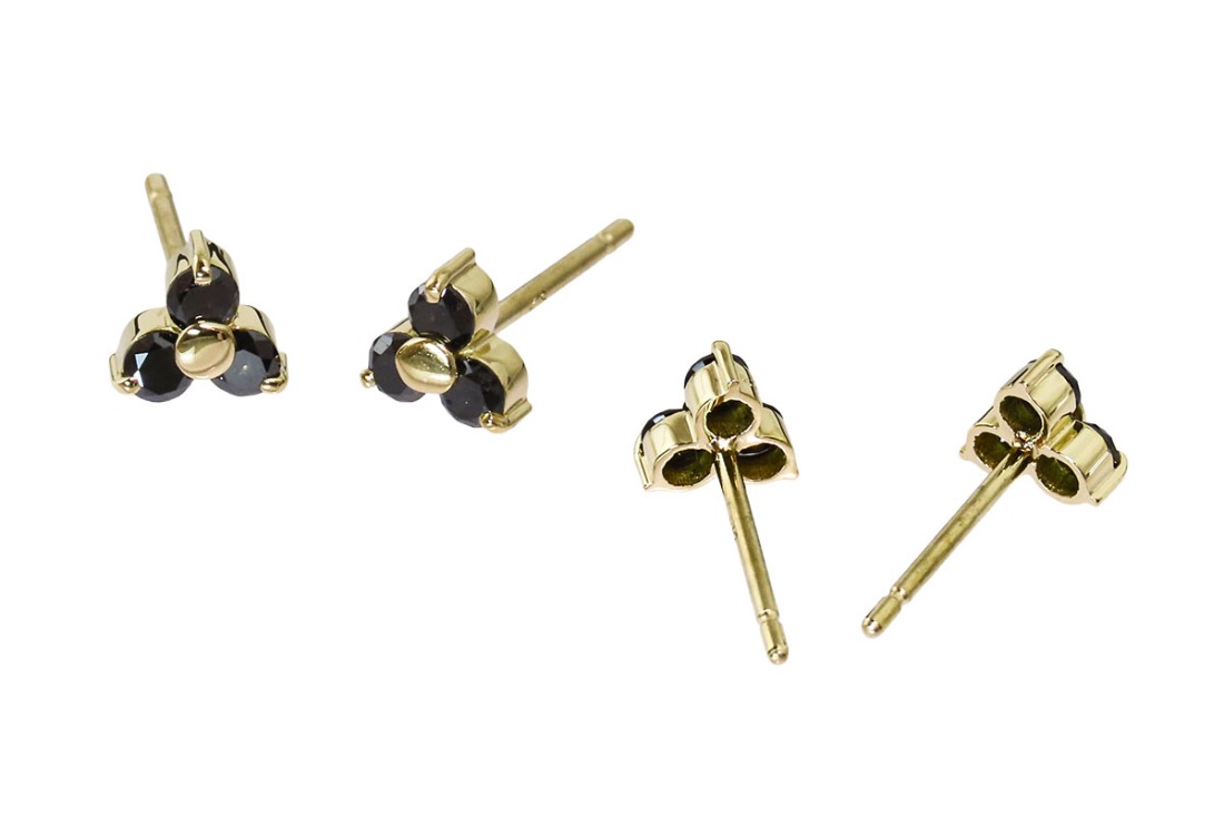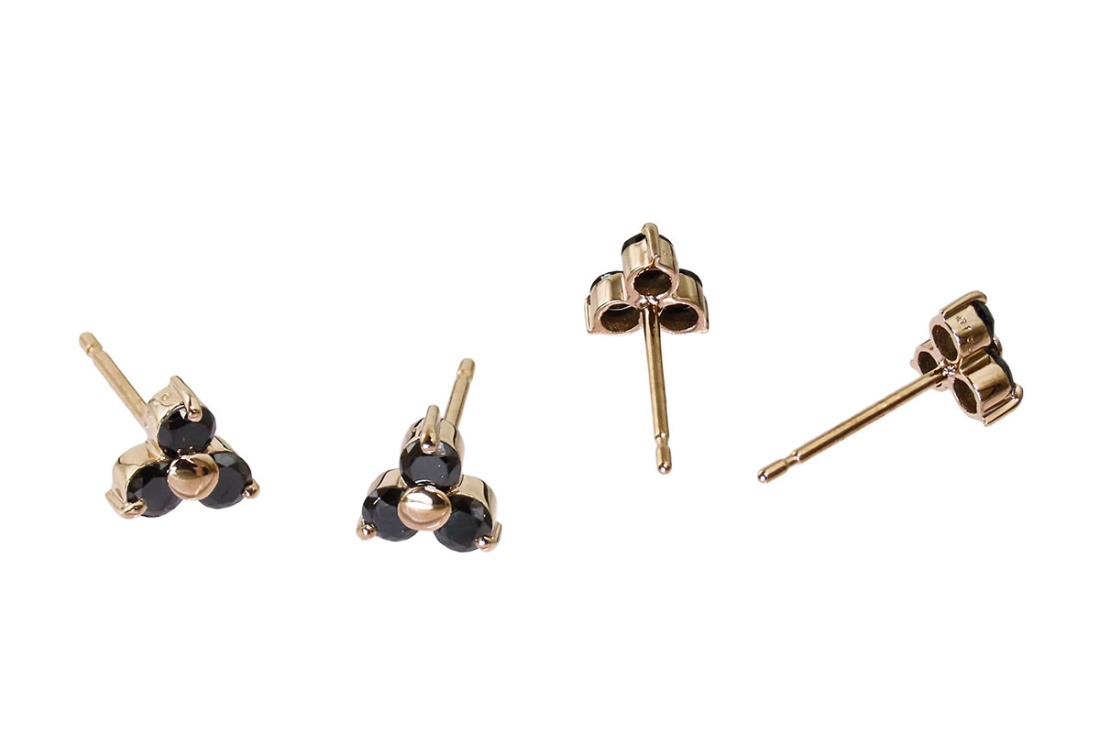 3石のブラックダイヤモンドを三角形に配置した、すっきりと洗練されたデザイン。