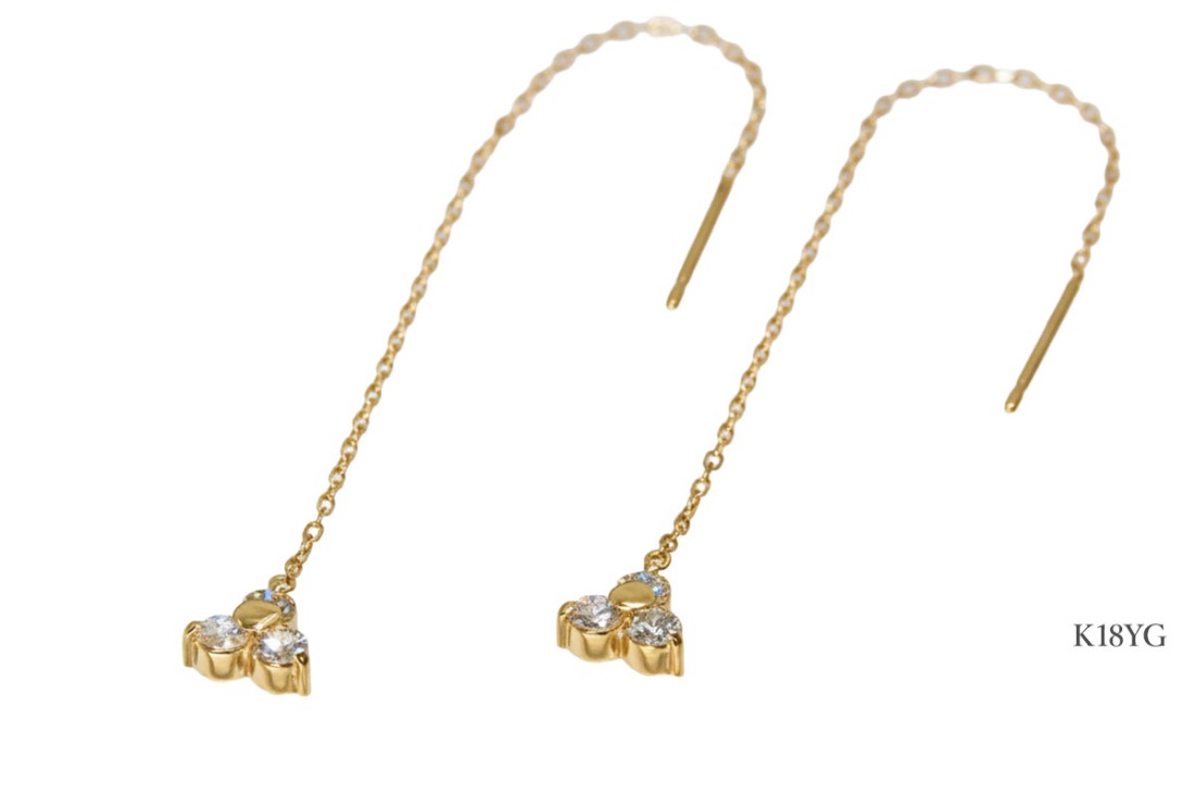 ~通常より1cm長いチェーンが、ダイヤモンドの輝きと揺れ感をより美しく引き立てるアメリカンピアス~