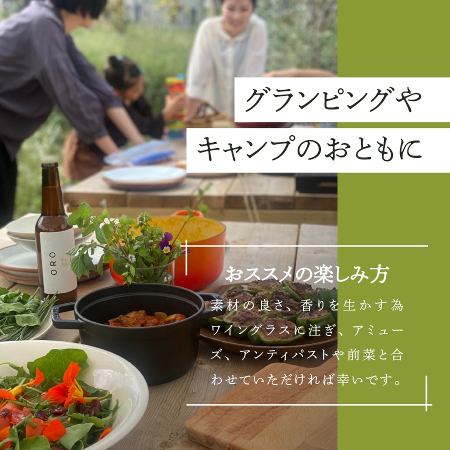 素材の良さ・香りを生かすためワイングラスに注ぎ、アミューズ・アンティパストや前菜と合わせてお楽しみください。