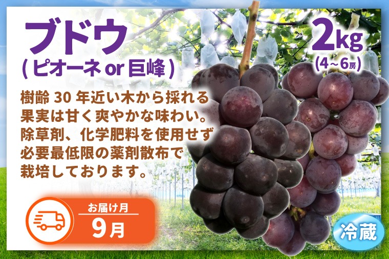 (9月)ブドウ(ピオーネまたは巨峰)2kg(4~6房)