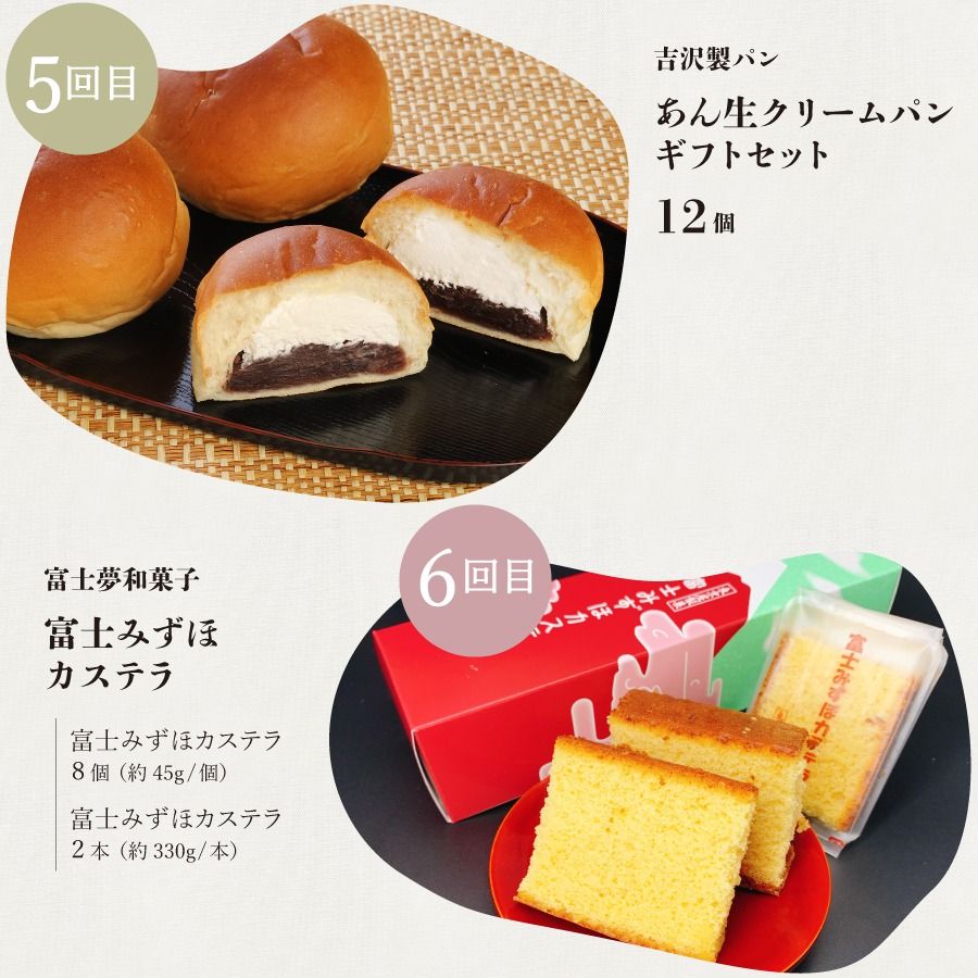 【12回お届け】富士吉田 スイーツまるごと定期便 お菓子 デザート バームクーヘン シフォンケーキ ロールケーキ 和菓子 あん生クリームパン ジェラート 詰め合わせ セット 食べ比べ 山梨 富士吉田