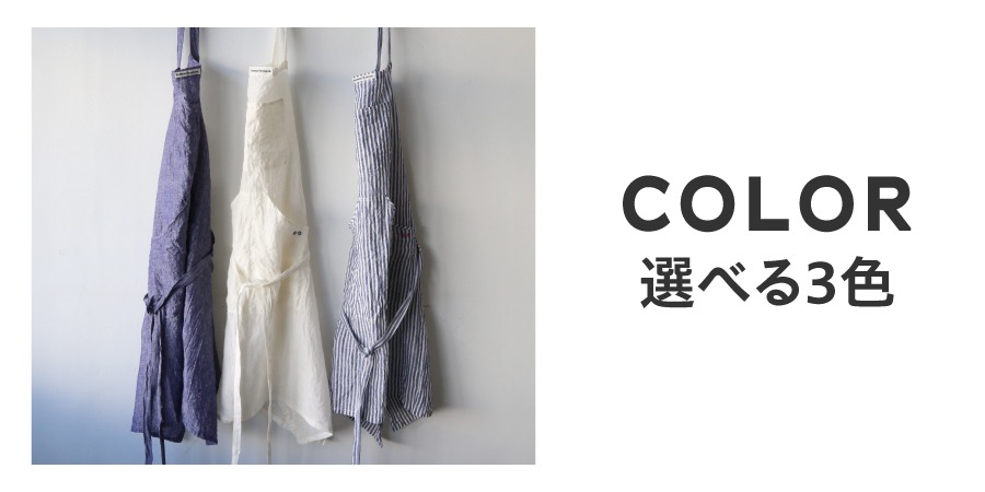 富士山の湧き水を利用した織物産業がさかんな地域だからこその素材を活かし、いいものを長く使っていきたいという思いで作られた、リネン素材のエプロンです。