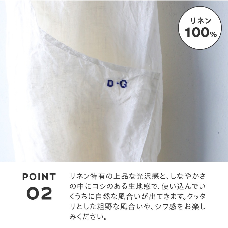 リネン特有の上品な光沢感と、しなやかさの中にコシのある生地感で、使い込んでいくうちに自然な風合いが出てきます。
