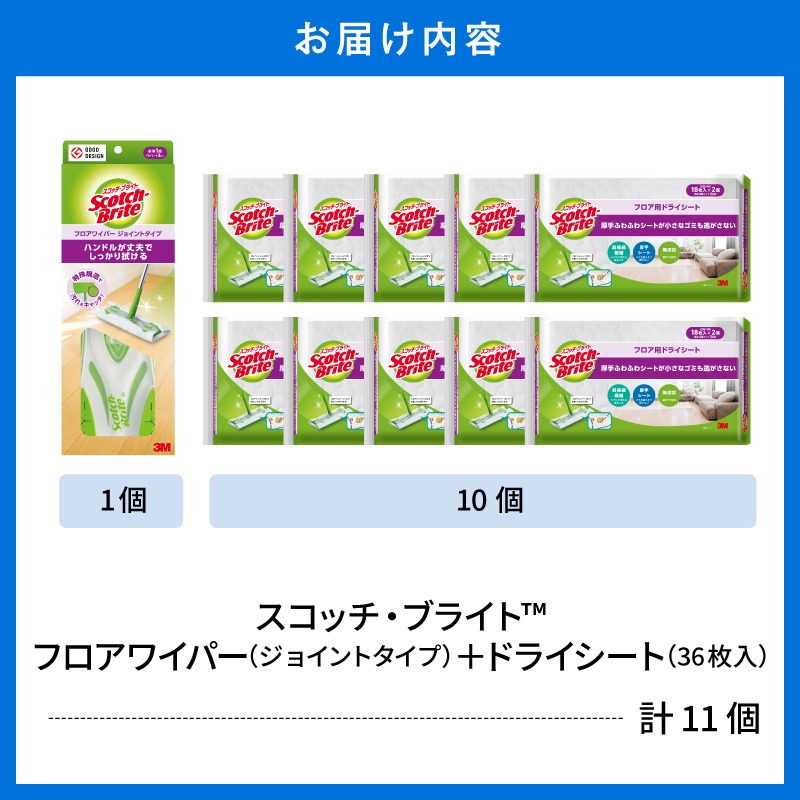 スコッチブライト フロアワイパー(ジョイント)+ドライシート36枚×10個 山形県 東根市 hi068-014