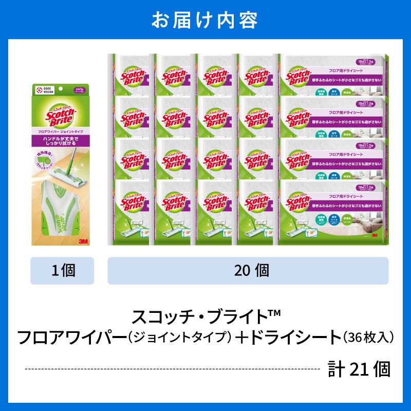 スコッチブライト フロアワイパー(ジョイント)+ドライシート36枚×20個 山形県 東根市 hi068-015