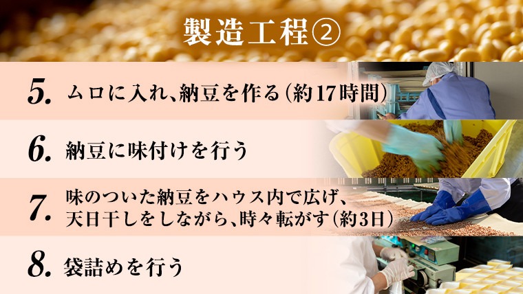 私たちはこれからも伝統的な干し納豆製法を守り、ひとつひとつを丁寧に愛情を込めて作ります。干し納豆の良さを多くの人々に伝えていくことを目指していきます。