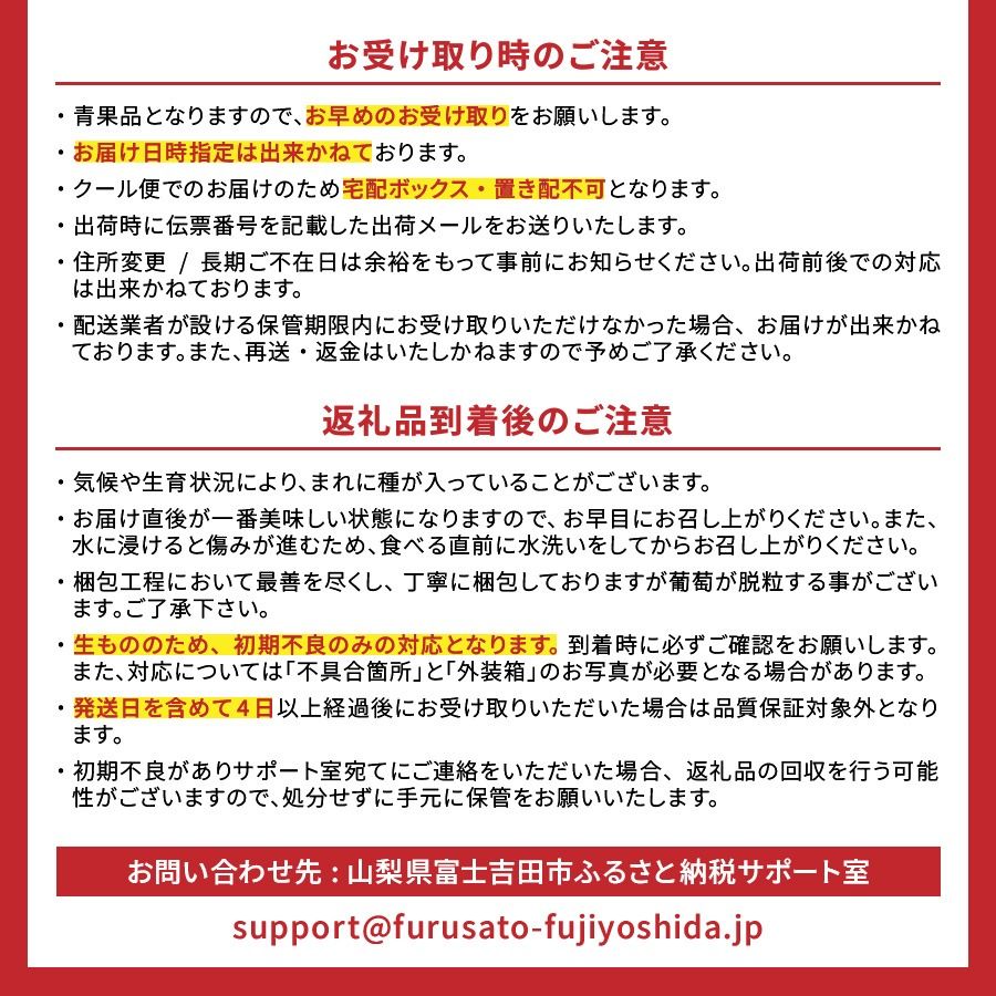 ■関連キーワード:シャインマスカット 選べる容量 約1.4kg 約2.0kg 2~4房 高級 ぶどう フルーツ 数量限定 期間限定 山梨県産 葡萄 種なし ブドウ 果物 くだもの シャイン フルーツ王国 山梨 富士吉田 2026年発送 冷蔵 送料無料