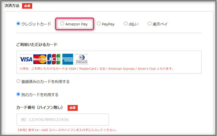 Q. 決済方法に「Amazon Pay」が表示されません。
