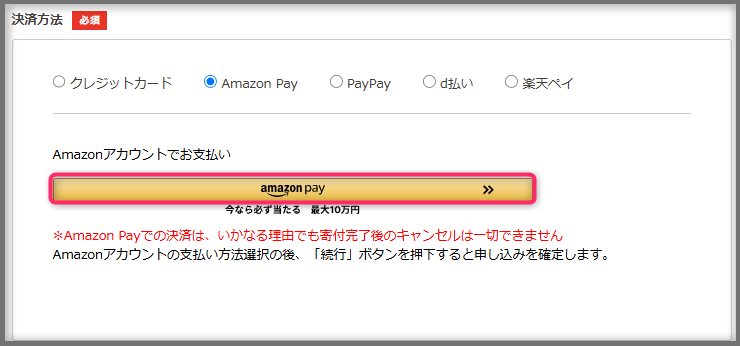 Amazon Payを使えば、寄付時にクレジットカード情報を入力する手間が省けますよ!
